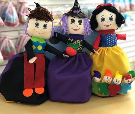 Uma boneca da branca de neve, de tecido, totalmente artesanal, e que possui na saia do seu vestido, os dedoches dos sete anões, preso com velcro. ...