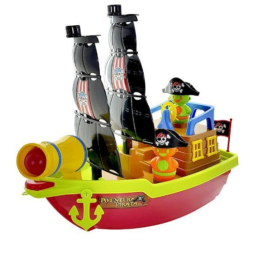Todos os dias uma nova aventura espera por você com esse incrível Barco aventura Pirata. O canhão gira e atira bolinhas, O timão gira, Cesta de Vig...