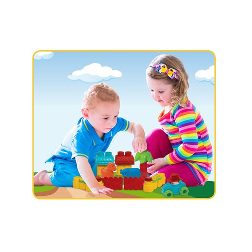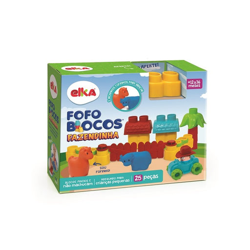 Kit com Blocos de montar macios, fofinhos para crianças pequenas. Contem: 14 blocos, 2 animais, 1 trator, 2 cercas, 2 telhados, 2 conexões, 1 á...